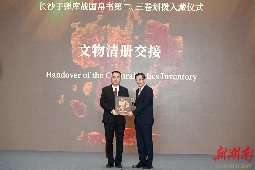 2025年10月13日,湖南省博物馆,举行长沙子弹库战国帛书第二、三卷划拨入藏仪式。