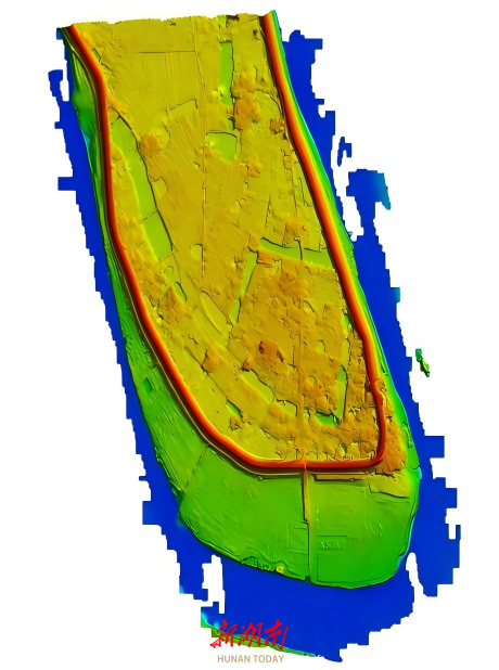 一张拍摄于2024年11月的卫星照片显示,犁头咀古城所在区域存在古城环壕。高程无人机确定了外壕与环壕之间的关系,钻探也证实了已被现代人回填的东侧环壕的存在。